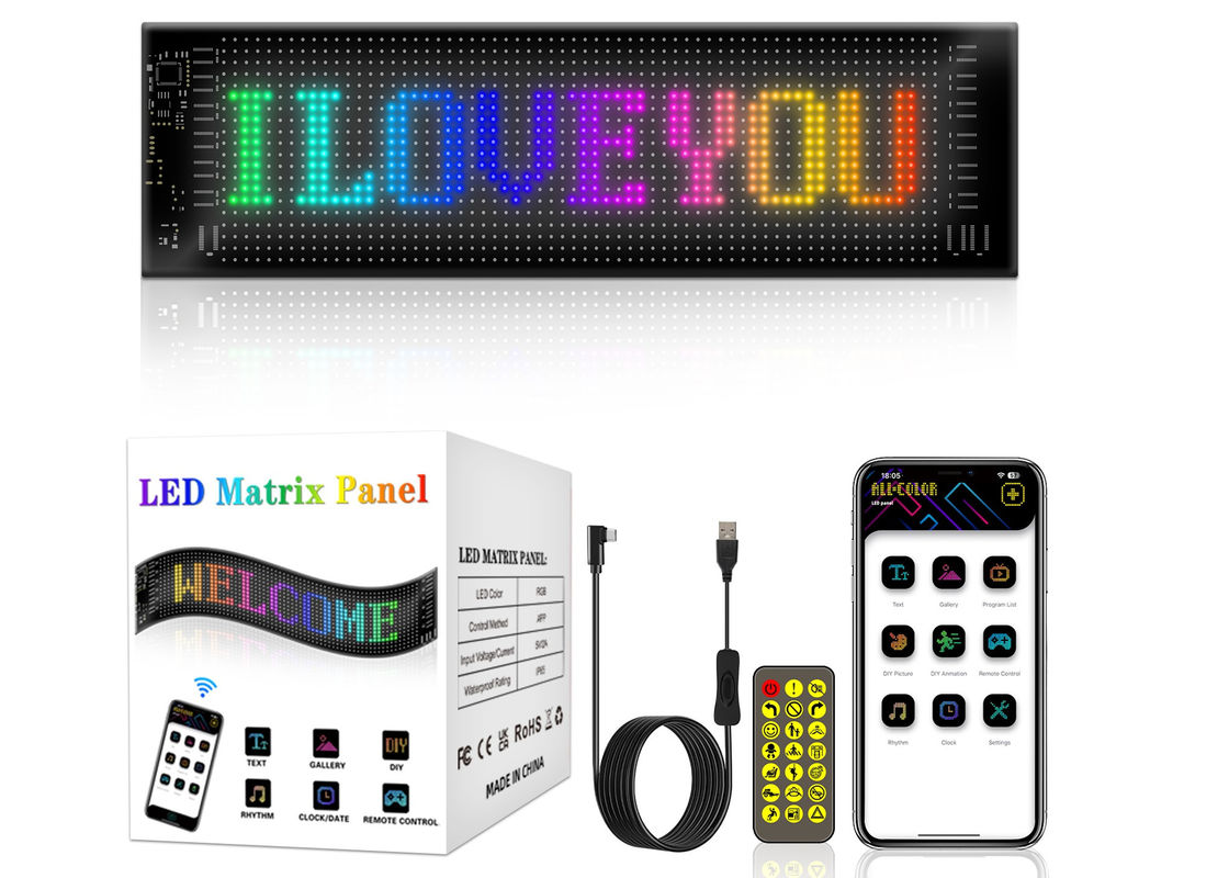 App Control LED Sign Board 20*64 Flexível USB Programável Custom Scrolling Message Sinais de carro Display digital